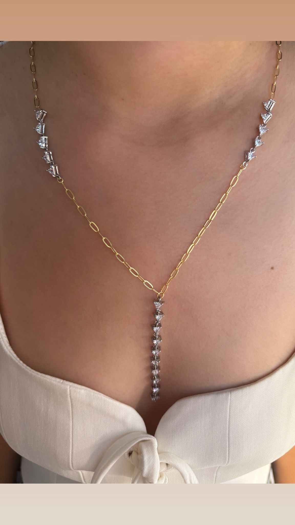 Gold Vip zincir detaylı baget taşlı Y kolye