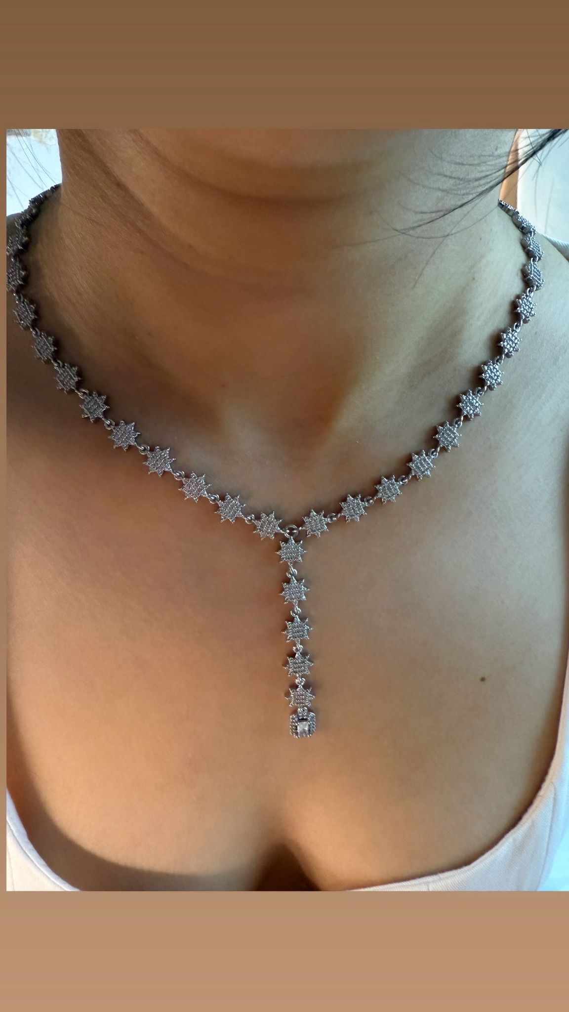 Silver gomme zirkon yıldız detay Y kolye