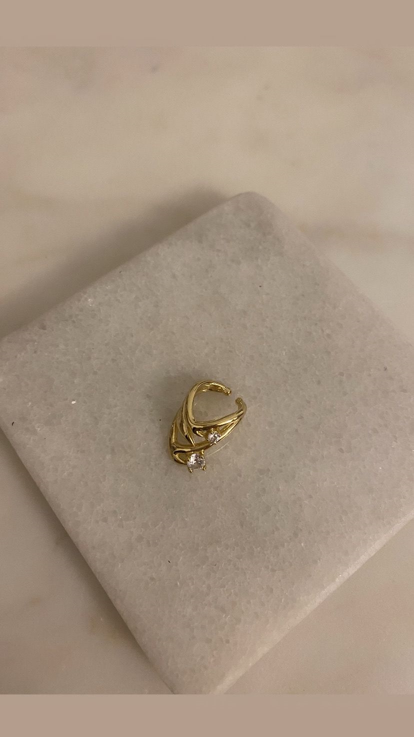 Gold özel seri iki baget taşlı zigzag kıkırdak küpe
