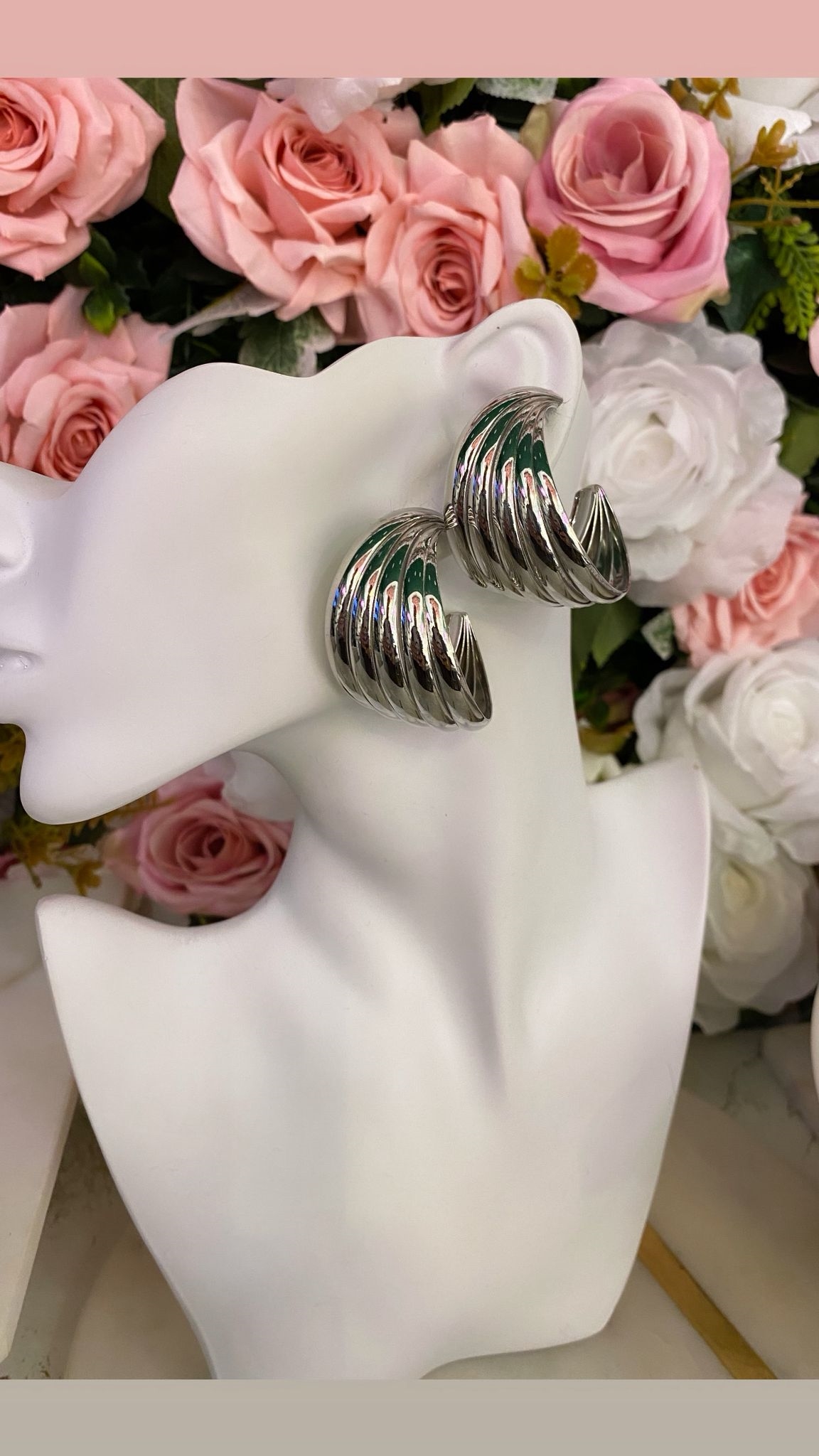 Özel seri silver şeritli kıvrımlı halka küpe